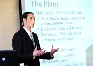 Afterward, Dustin Sulak, a Hallowell doctor with experience prescribing marijuana to his patients, spoke about the drug and how it effects the body. He also talked about the pros and cons of using it in various forms — for example, he said, smoking is fast and easy but exposes patients to carcinogens. Water pipes don’t irritate the lungs as much as smoking but patients don’t get the concentration of medication they sometimes need.
