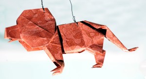 Demonstrating more playful uses of origami, Szillery made a 1-foot tall T-Rex dinosaur from a 30- by 30-inch sheet of wrapping paper.