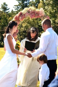 Notaries public can be a more affordable alternative to conventional officiants, and are often asked to conduct ceremonies at non-traditional locations, from backyards to beaches, airplanes to hot air balloons, although many have also appeared in churches, too. Those notaries who particularly enjoy officiating at weddings set their own compensation rates, often charging less for those close to home, with a surcharge or mileage charges imposed on those more than 100 miles away. Many also offer complete wedding planning services. Most will assist the couple with developing their ceremony, writing their vows, and doing whatever they can to help make the experience personal, meaningful and memorable. But, while no particular training is required for notaries to officiate, the membership association: Informed Notaries of Maine – www.informednotariesofmaine.org – provides its members with instructional materials, and the website includes listings of those who enjoy officiating.