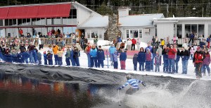 Pond skimming was just one of several activities during Lost Valley’s Snodeo. Dave Whitcomb, mountain operations manager, said the annual event is a way for staff and customers to come together to celebrate the end of another season.