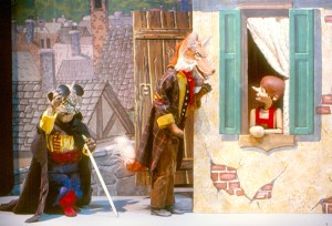 The fox and cat lead Pinocchio astray in the National Marionette Theatre’s production of “Pinocchio.”