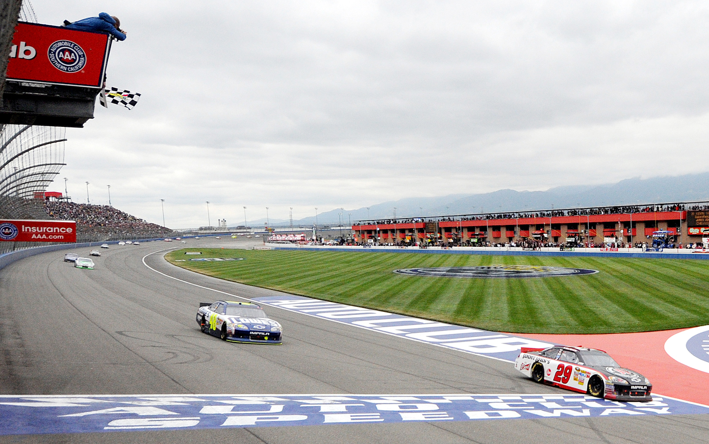Taking advantage of a small gap to the outside, Harvick made his move on Johnson going into Turn 3, then completed it coming around Turn 4. Ahead going down the last straightway, he finished off his becoming-a-trademark finish to take the checkers for the 15th time in his career.