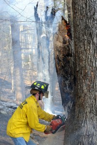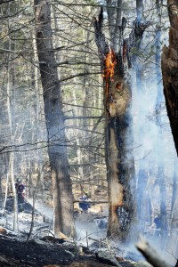 Dozens of firefighters from several communities responded to a woods fire on Youngs Corner Road in Auburn on Saturday afternoon. A controlled burn got out of control and spread to the woods where it charred about 4 acres.