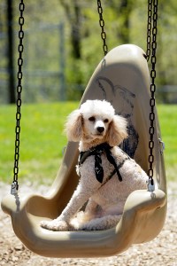 Rex does have some rules. Since children make him nervous, he never approaches the swing set when it’s busy. And he only uses the modified swing.