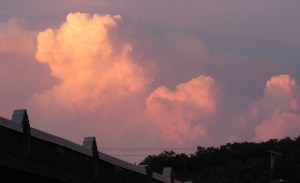 Then the sky quickly turned bluish gray and a few raindrops noisily spattered on windshields of cars parked at Marden’s. Thunder rumbled in the distance.