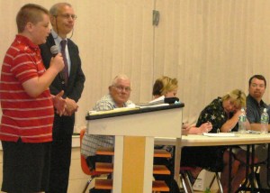 Mark Lopez asked the voters to amend the village improvement plan to keep the trough where it is, and voters endorsed that change.
