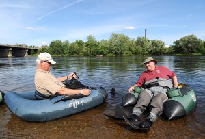 Like all good fishing trips, it began with a joke, this one about a one-armed fisherman told by Lewiston City Councilor Stephen Morgan. And with that tradition out of the way, the group paddled or kicked their way into the water, moving at a languid pace between Longley Bridge and the trestle farther downstream.