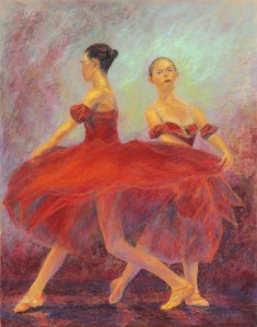The exhibit features a mix of oil paintings, pastel and watercolors, photos, one fiber piece and one glass and ceramic piece, as well as jewelry. Vivid sunflowers, bright yellow buildings, ballerinas in red, dramatic sunsets. Curator Tammie Grieshaber says “Walking into the gallery is an explosion of color! We have many large, exciting pieces that give the exhibit a great deal of energy. Ray Michaud has again created a layout that flows so easily around the gallery and just wraps around viewer.”