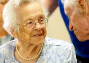 Sitting at a table was Antoinette Gagne, 101, and her son, Marcel Gagne, 65, both of Lewiston.