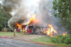 Two people escaped a burning house in Mount Vernon on Tuesday after a lightning strike set it on fire, former Vienna Fire Chief Jon Ljunggren said. The house at 334 Wings Mill Road was engulfed in flames and smoke when firefighters arrived at about noon. One of the occupants complained of chest pains and was taken to a hospital, Ljunggren said. Mount Vernon rescue and Winthrop ambulance responded, as did mutual aid from Belgrade, Fayette, Manchester, Readfield, Vienna and Wayne.