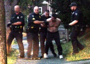 Latham was captured on video by a Sun Journal photographer while grappling with police on College Street in their efforts to subdue and detain him. He is shown being handcuffed and led to a police cruiser.