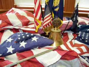 On Sunday, Sept. 11, Phillips’ Post 64 of the American Legion will host an American Flag Disposal Ceremony in remembrance of the victims of 9/11. The nighttime outdoor memorial homage will begin at 7 p.m. at the Legion Hall on Depot Street. Officers and members of the post and its Ladies Auxiliary, led by its commander, Richard Stovall, and Auxiliary president, Daria Babbit, will conduct a public flag disposal ceremony in accordance with the nation’s flag lore as prescribed by Legion and military regulations. The solemn memorial will be held in observance of the 10th anniversary of the attack on the World Trade Center on the morning of Sept. 11, 2001. The public is invited and encouraged to attend and to participate. Pictured around Post 64’s symbols are tattered and faded flags to be honorably burned.