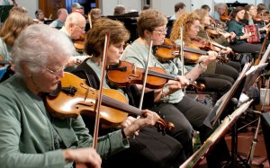 Members of Fiddle-icious play fiddles, guitars, flutes, banjos, tin whistles, accordions, cellos, violas, mandolins, harps, stand-up bass and other instruments. Their music is scored for beginners up to advanced players, creating a full, rich sound.