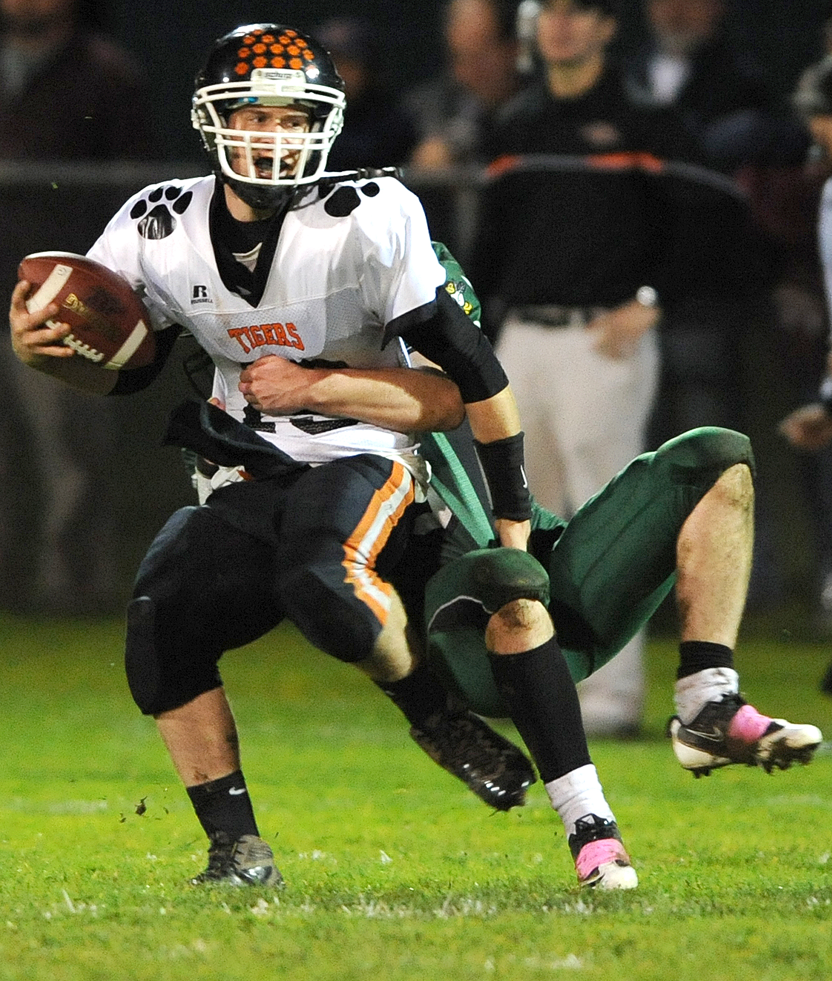 When Ouellette (18 carries, 140 yards) wasn’t dragging multiple Tiger tacklers up the middle, Durgin (six carries for 97) was collecting chunks with the counter play or Hersom (10 for 82) was bootlegging his way to big gains.
