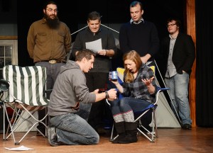 It’s the Tuesday before Thanksgiving, three days before the final performances of the Early Evening Show, and Mike Miclon is bringing a giant, wrinkled Hubbard squash from his car into Amanda Houtari’s house. The large, brown, bumpy vegetable is playing a critical part in the sketch they were rehearsing . . . as a turkey. “I’m sure we just saw the Hubbard,” says Miclon, founder of the Oddfellow Theater in Buckfield, “and thought it looked like a turkey, which it does, and that became the thing we built the whole sketch around.”