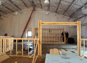 On the side of the building, a foundation waits for a prefabricated kitchen and bathroom area built by Schiavi Home Builders of Oxford. Rosenberg said the building is ready to hook utilities up to the prefabricated section. “It’s basically plug and play,” he said.