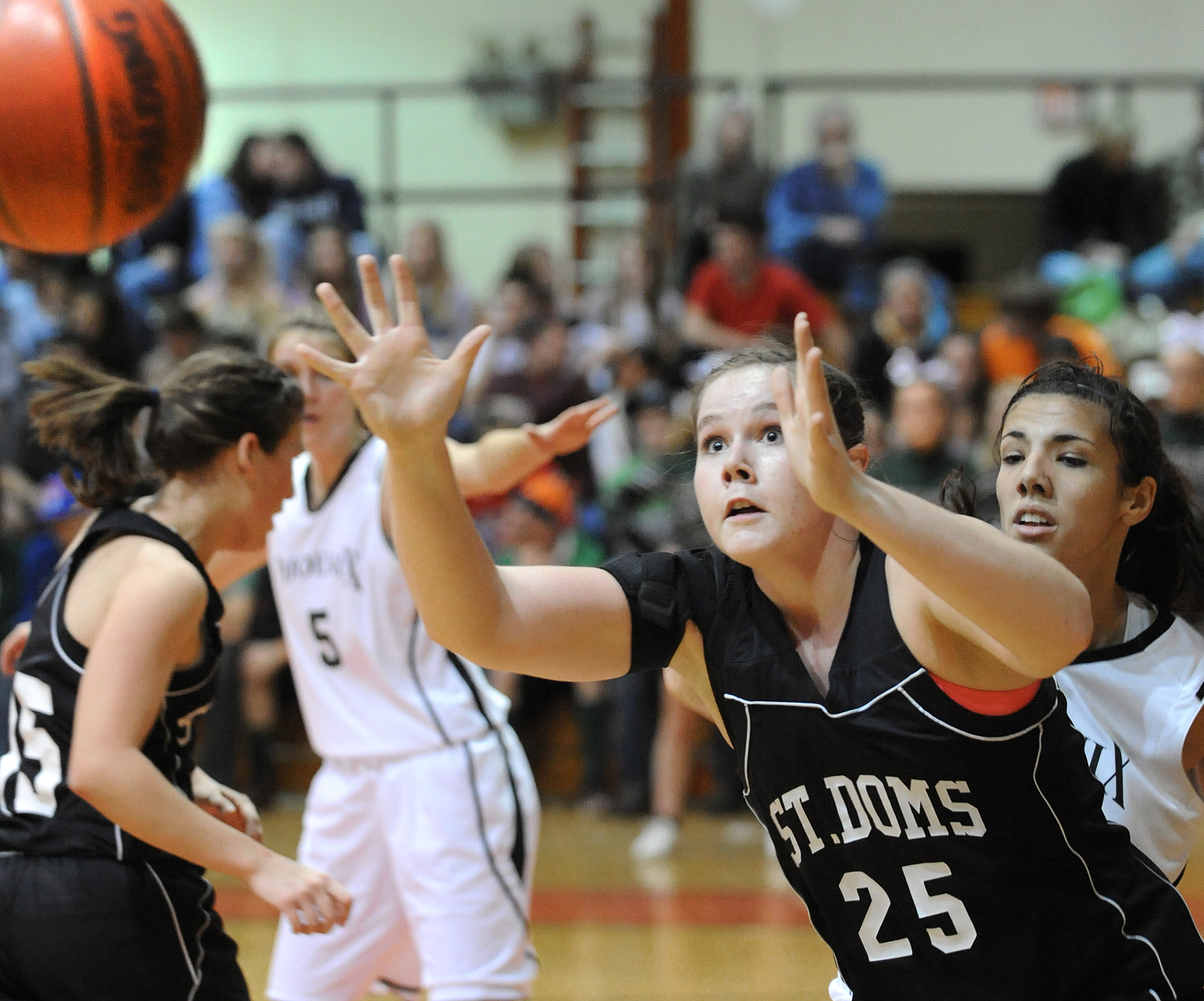 An Olivia Cluff hoop put an end to the Spruce Mountain run, but St. Dom’s would get no closer. The swarming Phoenix created turnovers throughout the half with their press, but couldn’t always finish on the offensive end. That’s something Kane feels will improve.