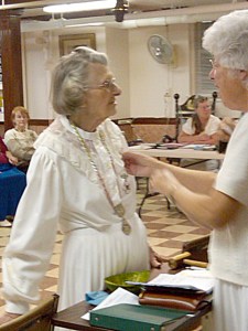 At a recent meeting, member Lucy Cowles was presented with a 75 year jewel for 75 continuous years of membership in a Rebekah Lodge. She has taken office in the lodge every one of the 75 years. She is a past noble grand and a past district deputy president of the Rebekah Assembly of Maine.