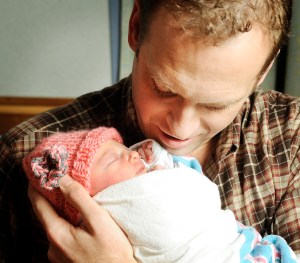 “I think it’s probably a mixed bag for me. I’m excited and nervous,” the new father said as he looked down at his wife and daughter with a smile on his face.