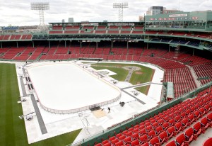 With a large hockey rink spanning the width of the infield and into the shallow outfield at the venerable ballpark this month, it’s unlikely that any of the hockey players will break out a ball and glove this week.