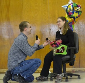 Hensley, 31, works in electronics at Radio Shack in Farmington. He’s pleased that he was able to propose “to the woman I love” at her school. “It went better than planned.”