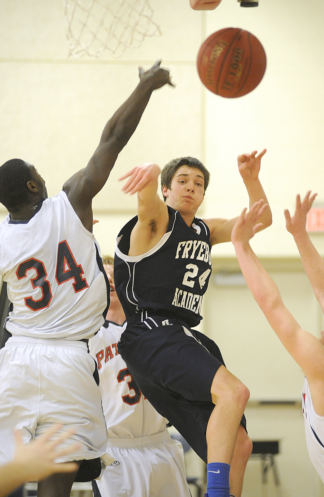 Fryeburg countered the Patriots’ zone defense by spreading the floor and attacking the gaps in the zone. That led to Amoako finding Mallory on the baseline for a couple of short jumpers during the game-changing run.