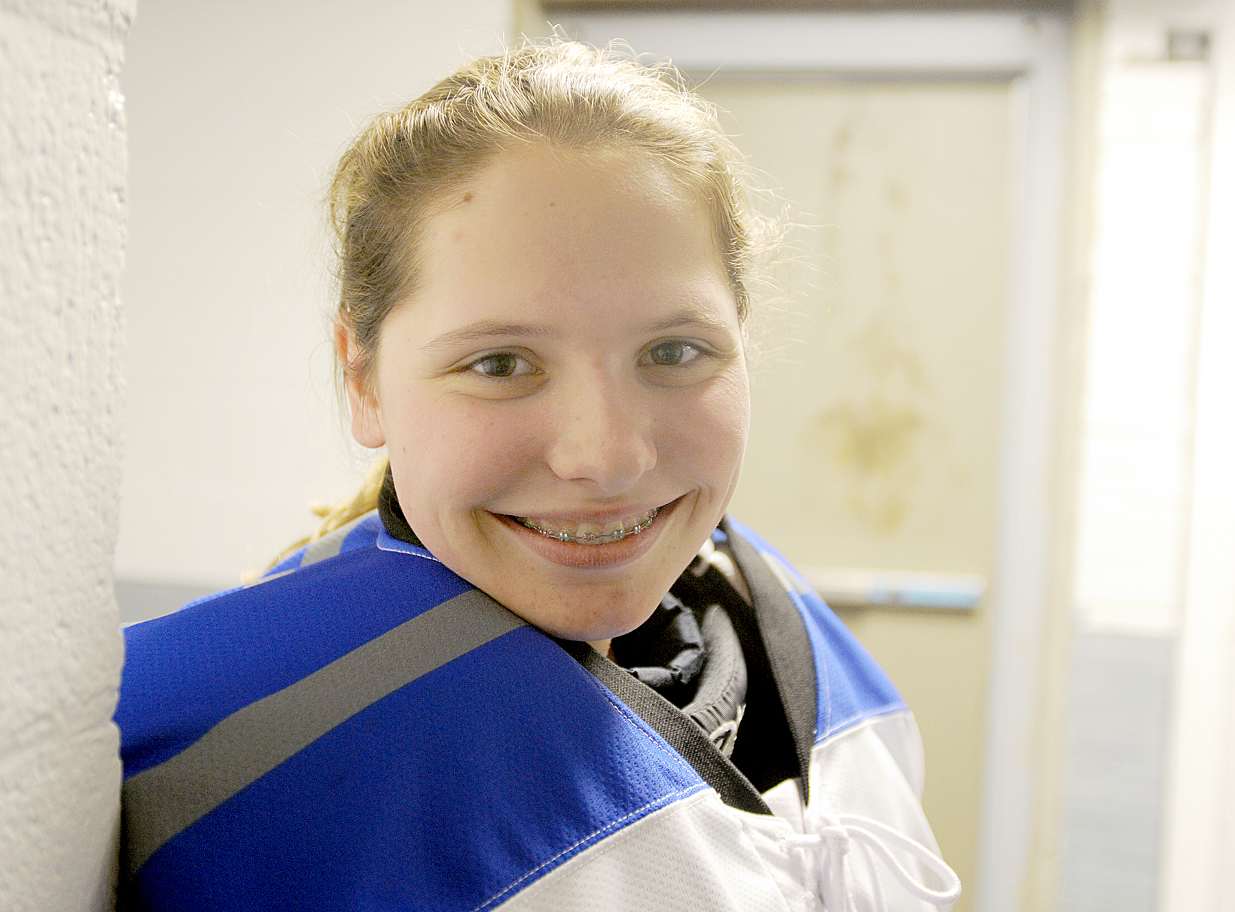 Pee-wees is the level at which players begin body checking, and also when many of the players begin to develop slapshots. That didn’t faze her in the least.