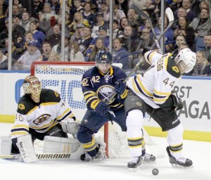 The Sabres didn’t back down against the more physical Bruins. Buffalo’s Cody McCormick squared off with Shawn Thornton less than three minutes in, and Buffalo’s Patrick Kaleta got into a fight with Lucic later in the first period.