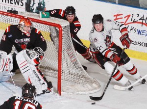 Kelly Jr., Britt Ouellette and Adam McAllister had the goals for the Privateers, while Travis Kauffeldt broke up Dundovich’s bid for a shutout with less than 10 seconds to play in the contest, on New Jersey’s 48th and final shot of the game.