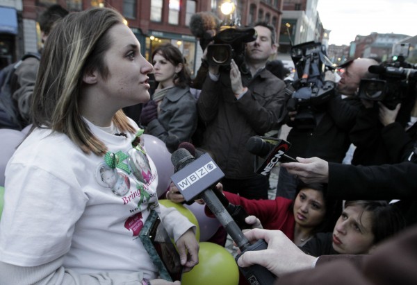 At the vigil, throngs of people crowded around Reynolds, whose pockets would be overflowing if she had a dollar for every hug she gave and received. Family and supporters sold T-shirts, bracelets and buttons, the proceeds of which will be used to make more T-shirts, bracelets and buttons.
