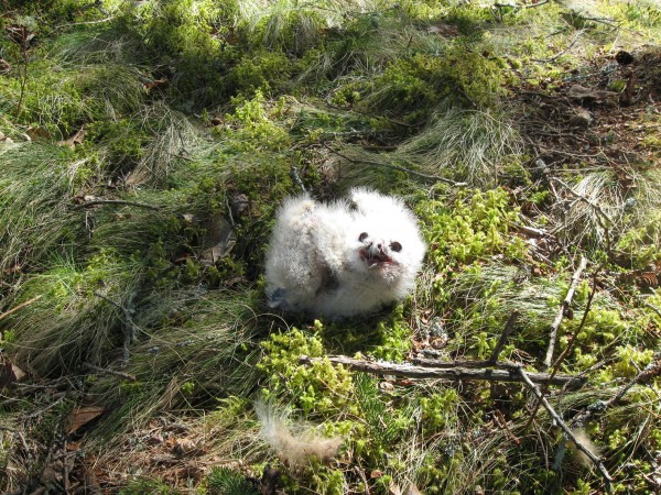 Rivers speculated that the baby owl fell out of the nest because it hadn’t been fed and became agitated. She said she does not think the parents abandoned the baby, which raptors almost never do, but that they just don’t know how to properly care for it.