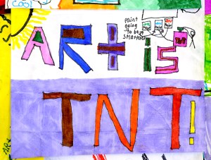 Auburn elementary students each made an “Art Is” panel during the spring of 2012. Hundreds of panels were attached to the next, creating a traveling mural. Students wrote things like “Art is a musical instrument that can play any song” and “Art is better than chocolate.” Fourth-grader Christian Hiscock wrote: “Art is TNT (Dynamite).”