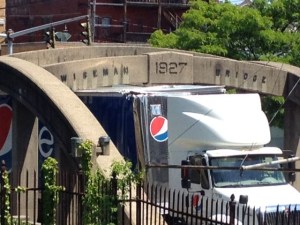 A Pepsi truck became jammed on Wiseman Bridge in Lewiston shortly after 1 p.m. Friday.