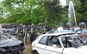 Battalion Chief Tim Allen of the Auburn Fire Department said several barrels containing flammable liquids, eight to 10 cars and a large pile of tires in the salvage yard were all burning when crews first arrived on the scene.
