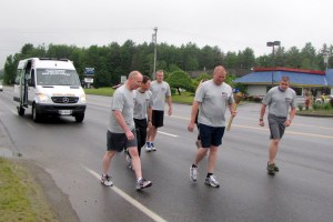 Ron Morin of Carrabassett Valley supplied an ambulance to carry supplies and the Farmington Police Department and the Franklin County Sheriff’s Department provided an escort as the runners made their way along the highway.