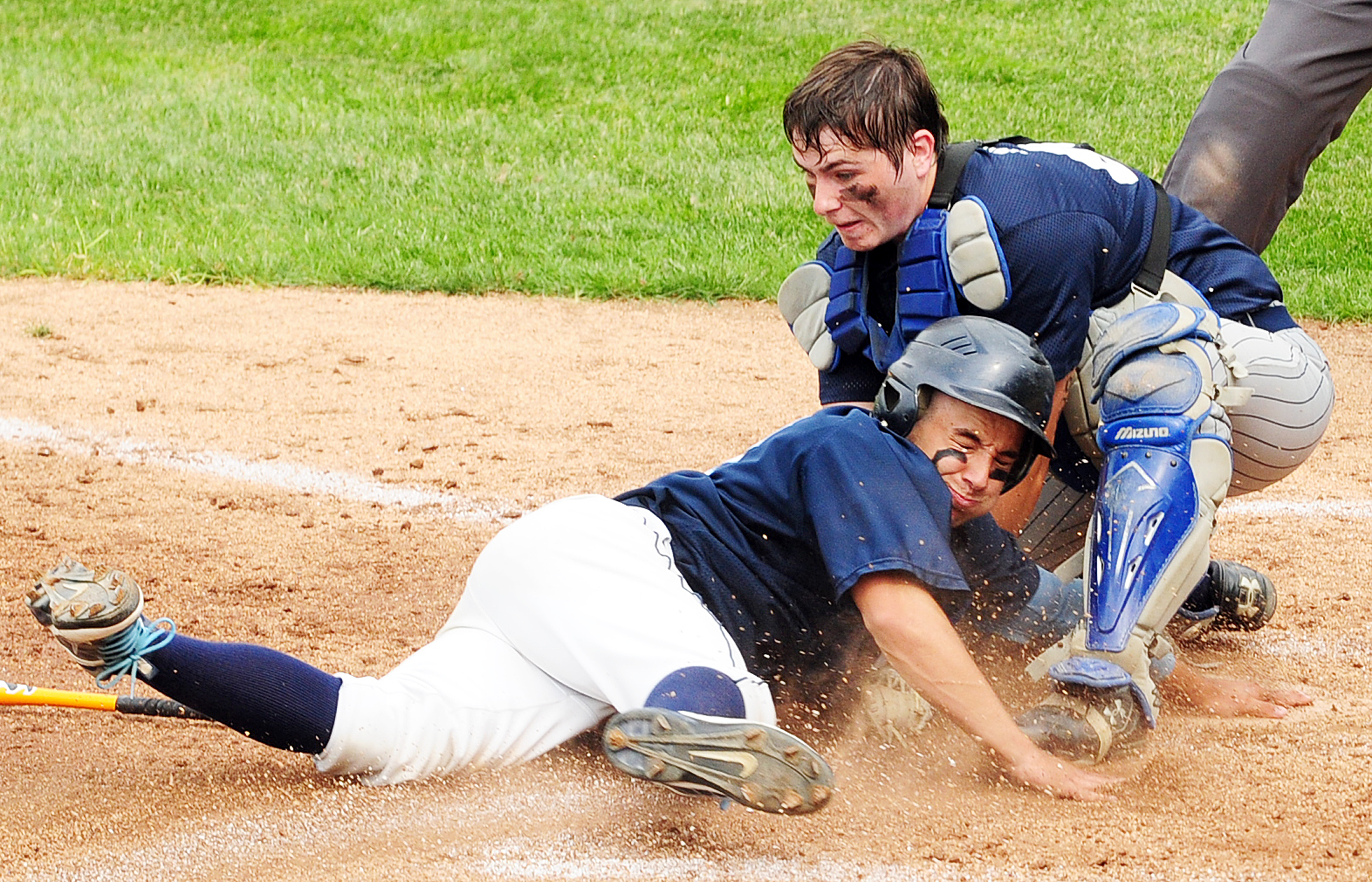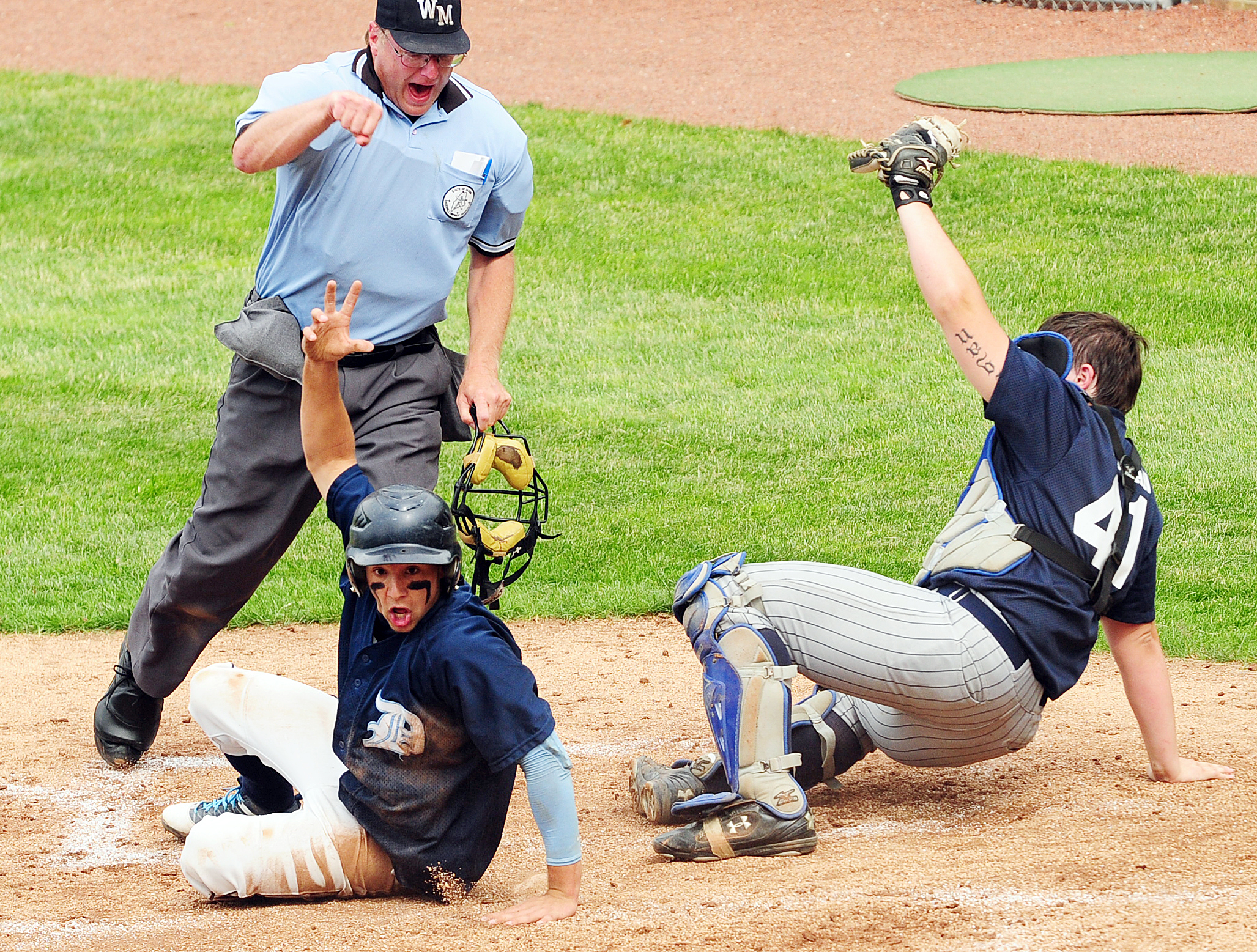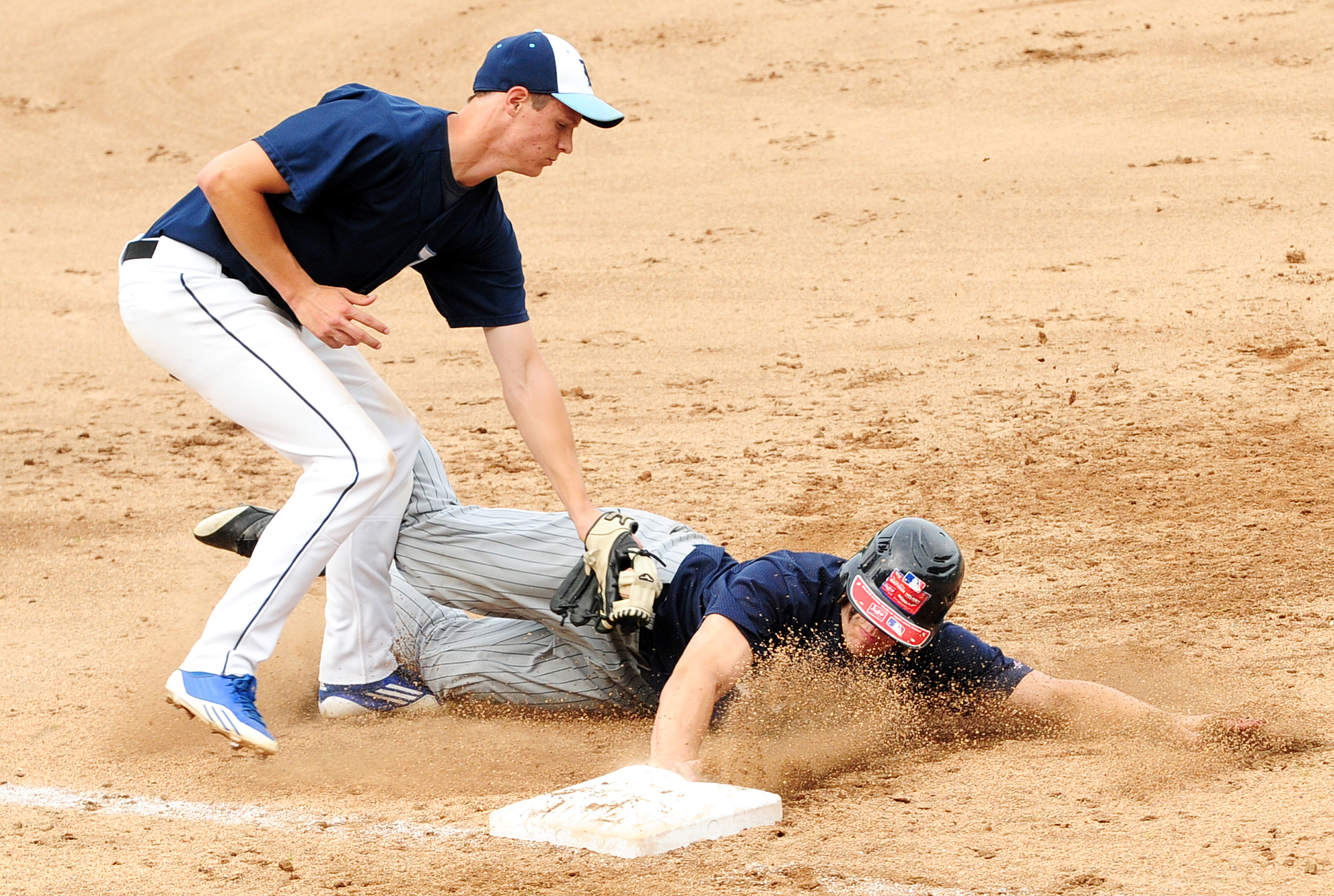Whitney got out of tough spot of his own in the fourth. With runners at second and third and one out, Trenoweth hit a bouncer to second baseman Tyler Brown, who looked Snowman back to third, then threw to first for the second out. Snowman broke for the plate on the throw, and first baseman Corey Howard delivered a perfect throw to Morgan, who, on one knee, blocked Snowman from the plate and tagged him for the 4-3-2 double play.