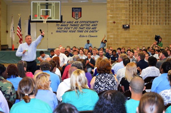 “Domestic violence is a very serious problem in society,” LePage said to a crowd of about 300. “I’m trying to encourage you to do two things: If you’ve never been exposed to it, please don’t. Secondly, if you have been, please help me stop it. Because too many people are getting hurt and too many people are dying.”
