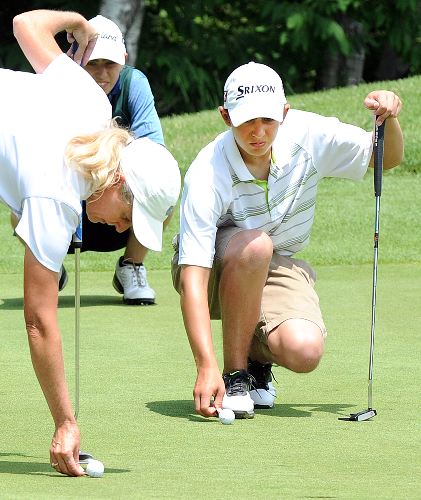 Sunday’s final round will feature the Legends exclusively, but the First Tee girls and boys, such as Auburn’s Justin Keaney, who played with Turner and Patti Rizzo, got an up-close view of world class, competitive golf on Saturday.