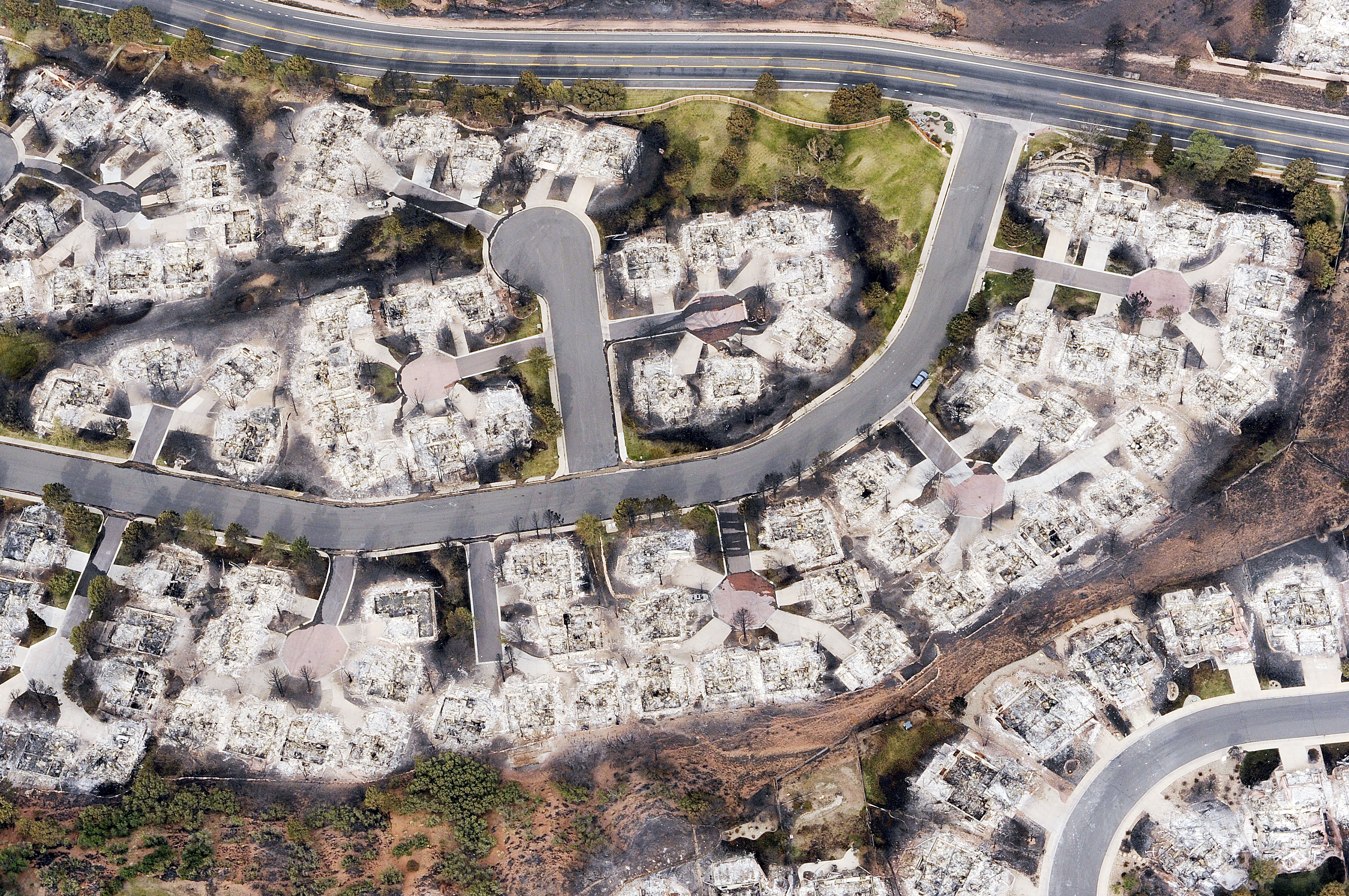 From above, the destruction wrought by the fire becomes painfully clear: Rows and rows of houses — hundreds in all — were reduced to ashes even as some homes just feet away survived.