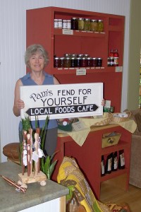 In mid-July, Matthews opened “Pam’s Fend for Yourself Local Foods Cafe,” providing a gathering place for local residents as well as a watering hole for travelers in the region. The cafe-within-a-store serves tea and coffee, cold drinks, fresh baked goods, and light lunch fare such as wraps and sandwiches.