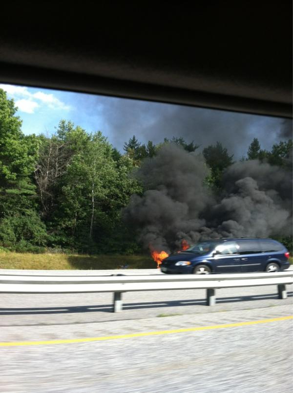 Auburn fire and New Gloucester fire are responding to the scene of the accident, where a car fire has been reported. Scanner traffic says that it is a fully-involved vehicle fire.