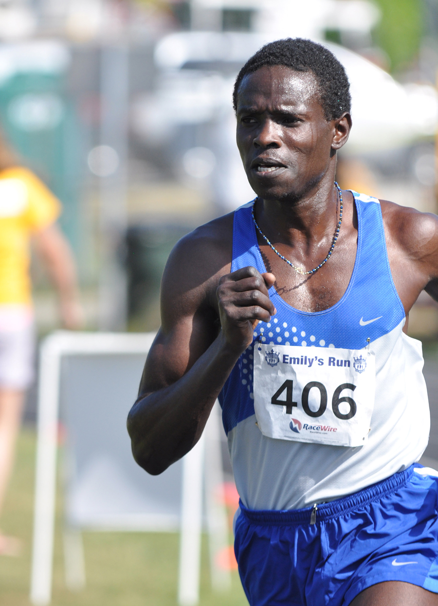 Moninda Maurube of Auburn eyes the finish line at Emily’s Run on Sunday. Maurube placed first overall and tied the course record, set in 2006 by Donny Drake, with a time of 15:32.