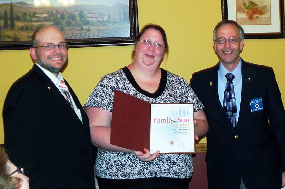 The Family of the Year Award was presented to Daniel and Melissa Leclair. Mr. Leclair is currently serving as Grand Knight for the Council. He and Melissa are the coordinators for the Thanksgiving Food Basket Project and Christmas Giving Tree Project at Holy Cross Church.
