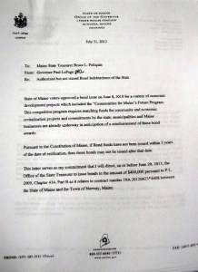 The letter, dated July 31 from LePage to state Treasurer Bruce Poliquin, authorizes the treasurer to issue the bond. The letter is not legally binding and does not require that a future governor follow LePage’s directive, but it was a ray of hope for town officials and others who have worked for five years to save the iconic 1894 Main Street building.
