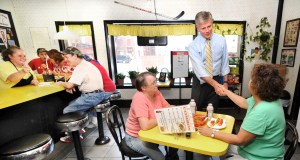 LEWISTON — The top political operative for the U.S. Chamber of Commerce continued to defend television ads that denounce the record of former Maine governor Angus King, an independent U.S. Senate candidate, during a whistle-stop at a Simones’ Hot Dog Stand on Tuesday.