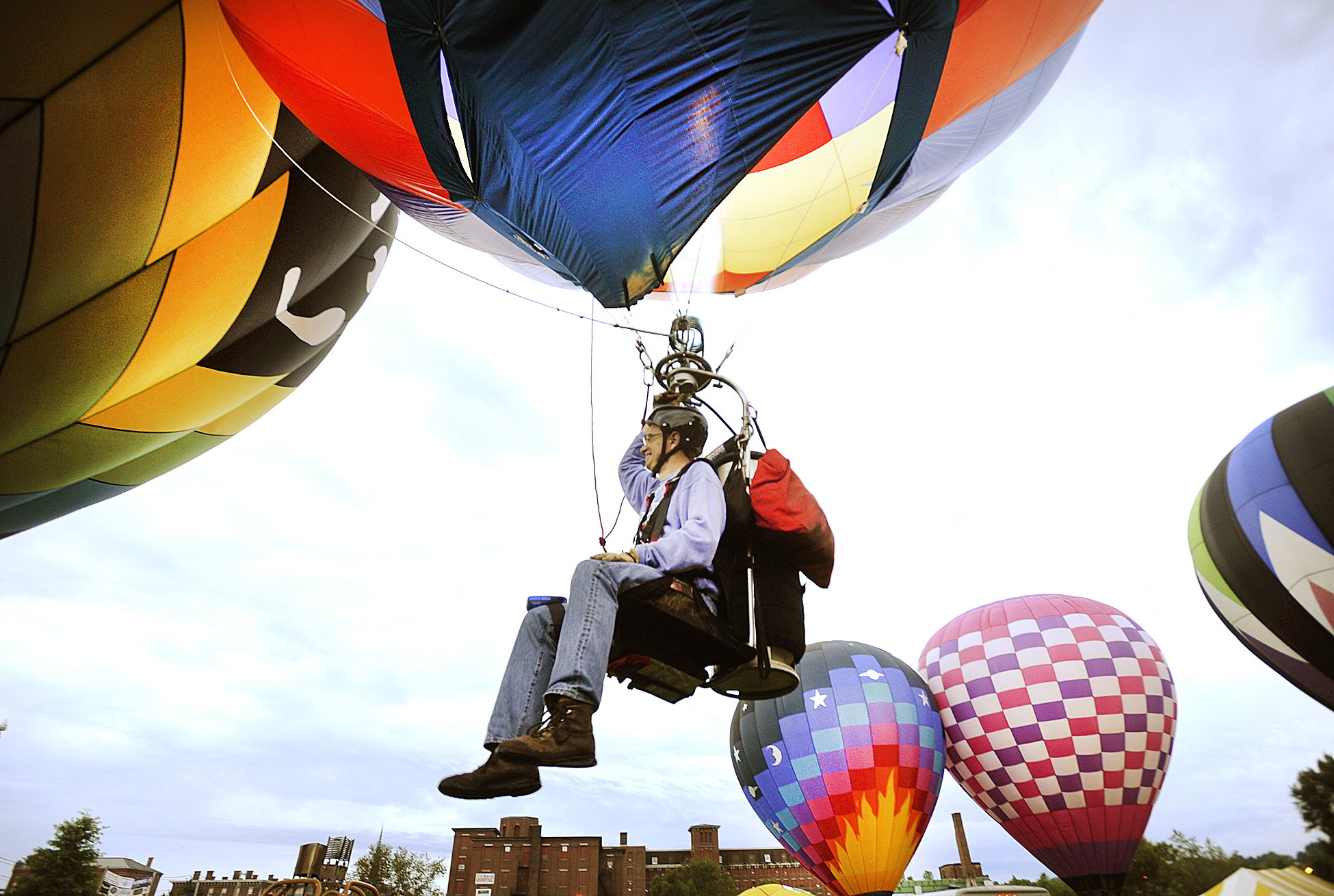 Rick Jones of New Hampshire lifts off on his cloud jumper on Saturday morning the 2nd day of the Great Falls Balloon Festival held at the Simard and Payne Memorial Park in Lewiston.