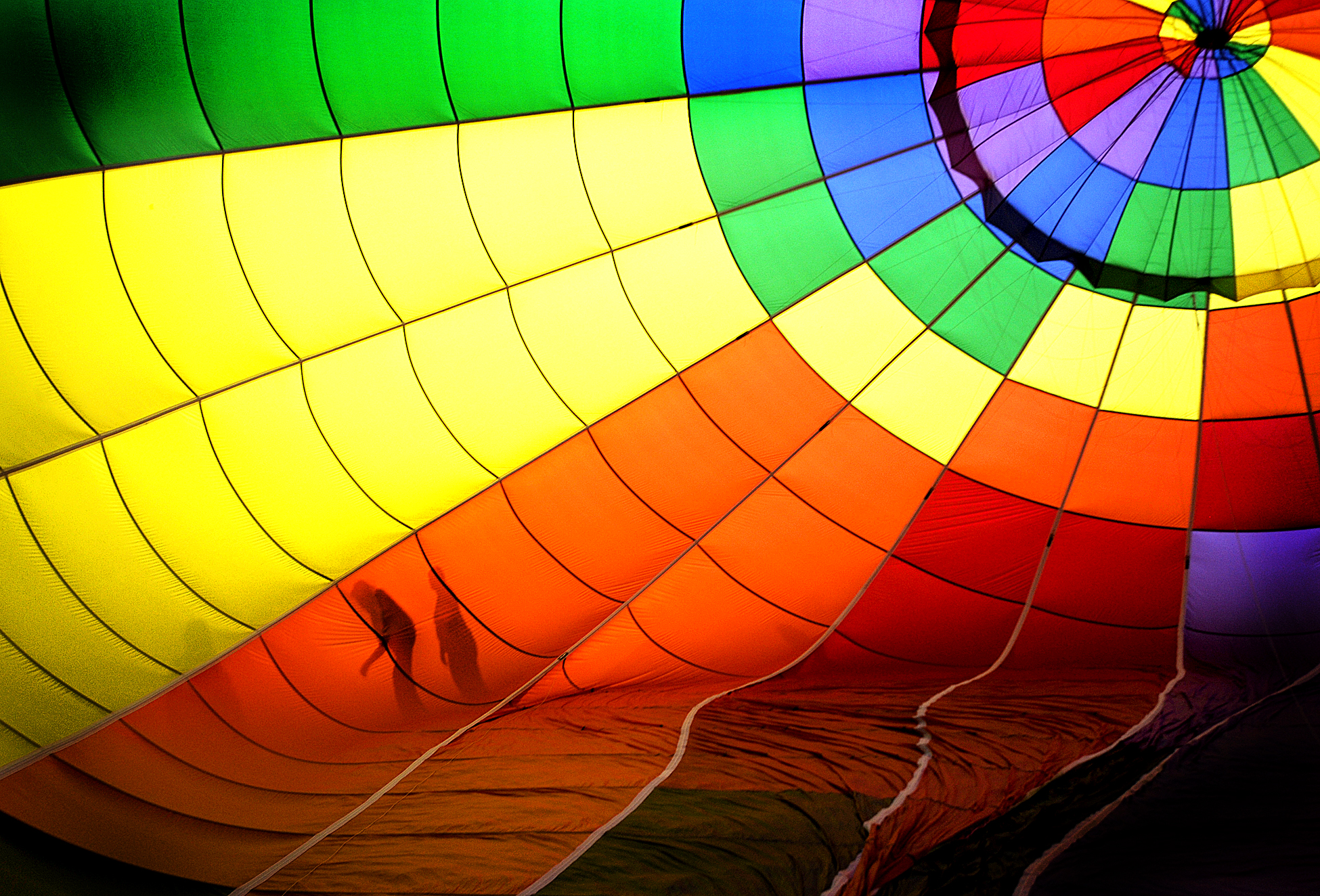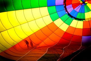 Volunteer crew members are silhouetted against the colors of Firefly a local balloon on Saturday morning the 2nd day of the Great Falls Balloon Festival held at the Simard and Payne Memorial Park in Lewiston.