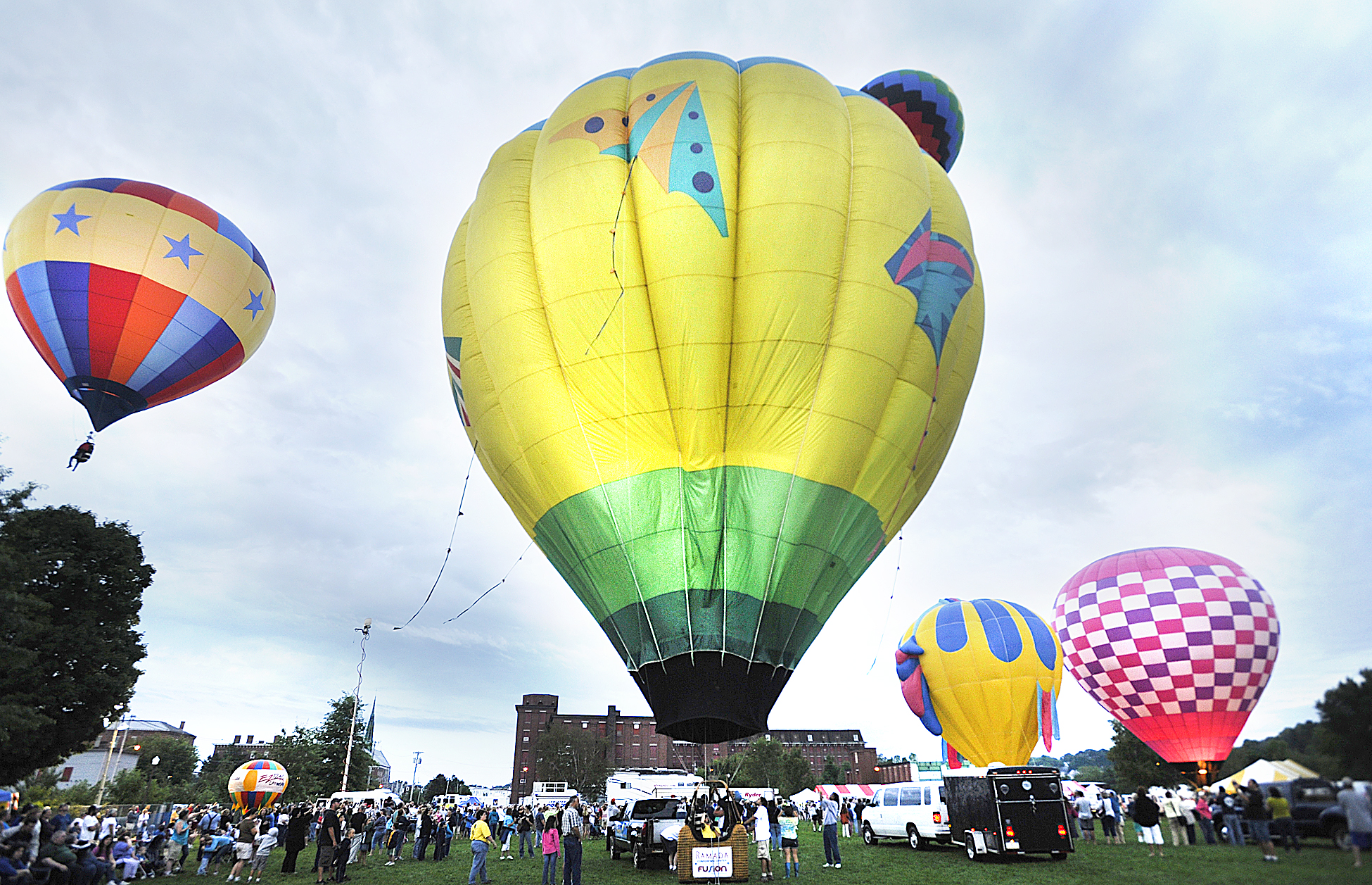 Tailwinds owned by Jim Rodrigue of Lewiston sets to launch on Saturday morning the 2nd day of the Great Falls Balloon Festival held at the Simard and Payne Memorial Park in Lewiston.
