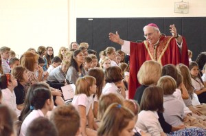 In speaking to student, Bishop Malone said “Many of you will be called to a vocation in marriage; some may be called to the religious life and the priesthood,” urging students to listen to these calls.