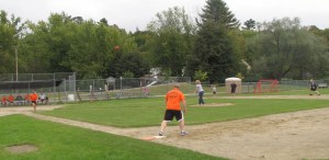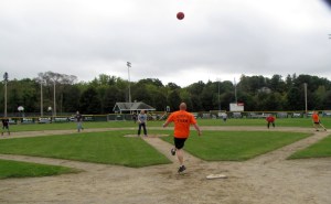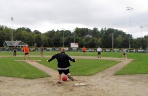FARMINGTON — More than $800 in pledges and donations was raised during a game of kickball Saturday at Hippach Field.